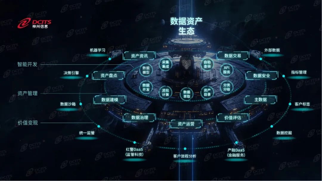 作为领先的金融数字化转型合作伙伴,在数据资产领域。神州信息已经从“智能开发、资产管理和价值变现”形成了完备的数据资产服务和产品生态体系,为各类型商业银行数据能力建设提供全方位服务。